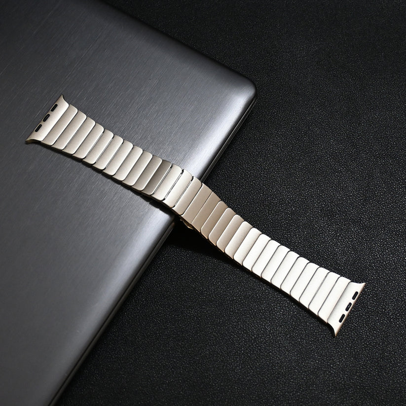 This product features: refine your look with this apple watch band, the ultimate upgrade that brings together a premium stainless steel link band with a sturdy magnetic stainless steel clasp. this specific design offers a sophisticated look that complements the modern design of the apple watch.