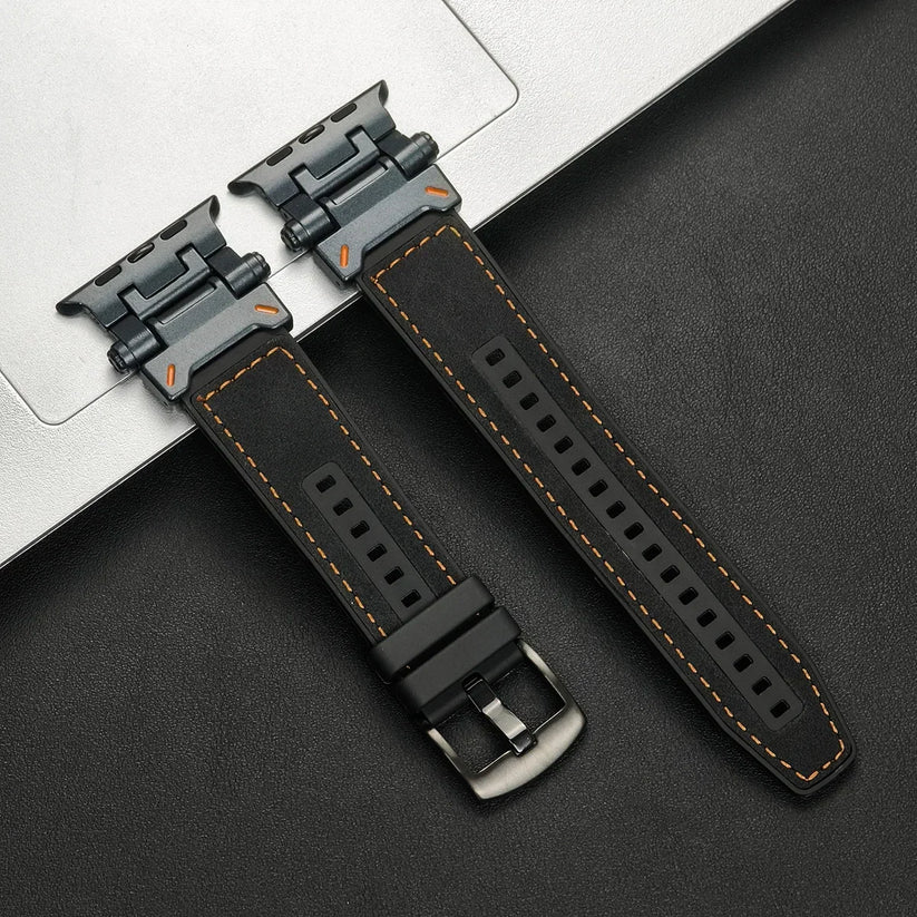 This product features: refine your look with this apple watch band, the ultimate upgrade that combines an genuine leather band with a mecha lugs. once it's on, you'll love it so much that you won't want to take it off.