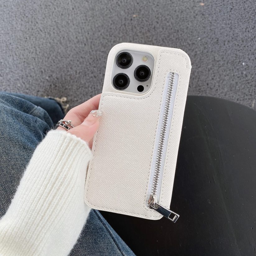 This product features: your phone nestles into this denim wallet case, bringing together your essentials with a sleek zipper pocket and built-in mirror. the snap-button closure keeps cards secure while the washed denim adds street style to your daily carry.
