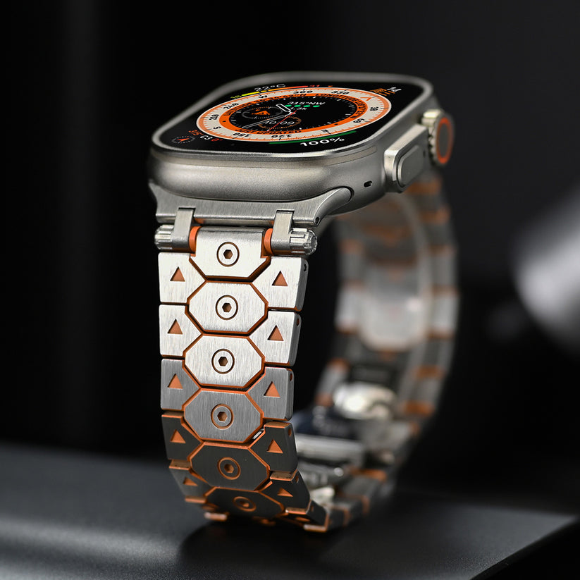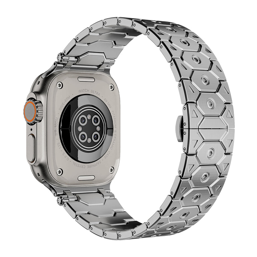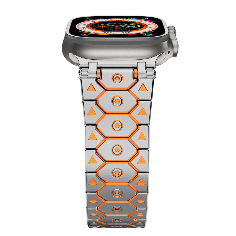 This product features: refine your look with this apple watch band, the ultimate upgrade that brings together a geometric band with a sturdy stainless steel clasp. it’s an everyday essential that promises to elevate your apple watch to luxury status.