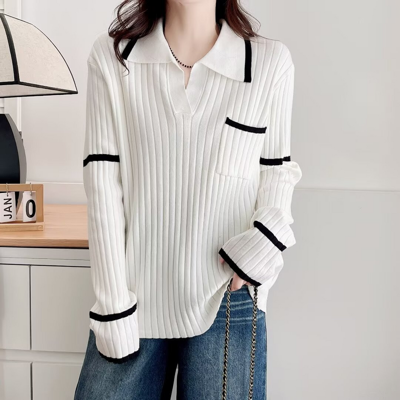 This product features: casual yet polished, the margot ribbed knit polo sweater is the ultimate laidback-prep essential. with its effortless, girl-next-door charm, this sweater is perfect for brunch runs, campus strolls, or cozy weekends in town.