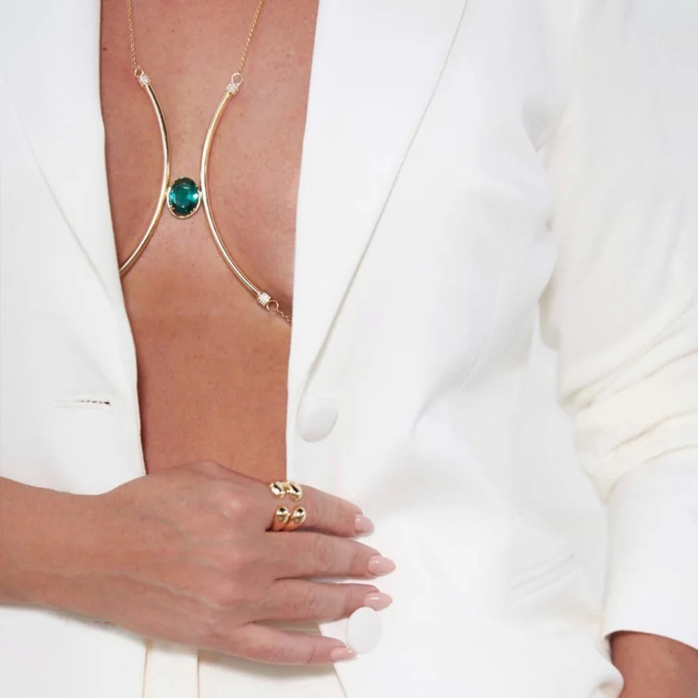 Make a statement in elevate your style with the Crystal Chest Chain, a perfect blend of timeless sophistication and modern elegance..