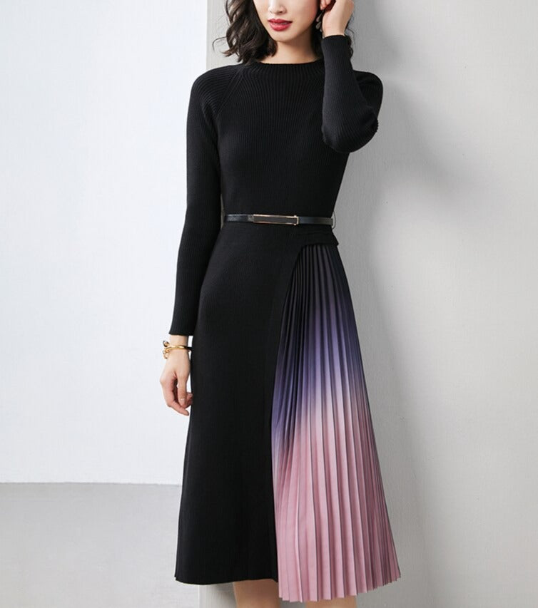 Command attention with refresh and brighten your winter wardrobe with a little fashionable inspired slay. Slip into this belted knit dress boasting a gradient pleated design to show off your affinity this season..