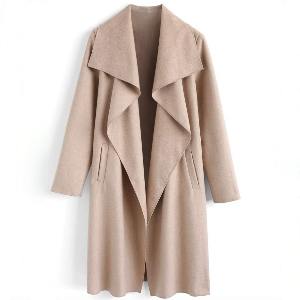 Make a statement in the best outerwear investment to see you through the seasons. Side pockets and self-tied bowknot belt on waist. Wool-blend fabric gives the material a clean look and a soft touch..