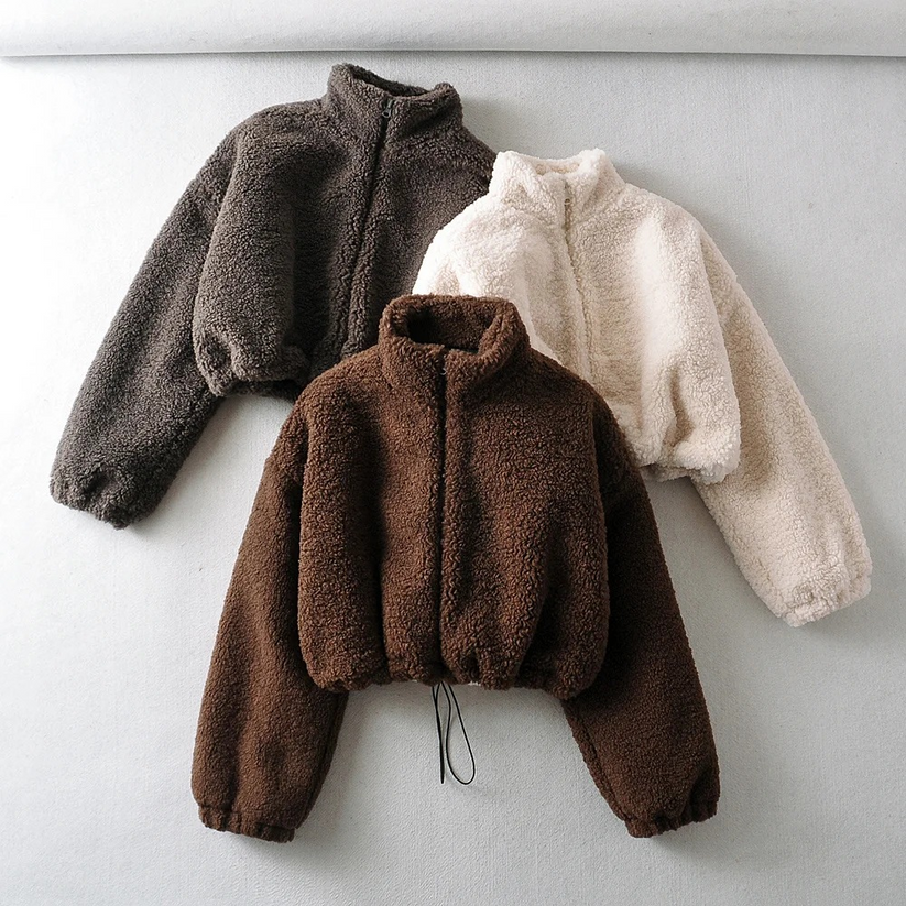 This product features: wrap yourself in warmth with this ultra-soft sherpa crafted from premium fleece for a cozy feel all day. featuring a cropped silhouette with a cinched drawstring hem and full-zip closure, this piece is perfect for layering or wearing on its own for a modern, casual look.