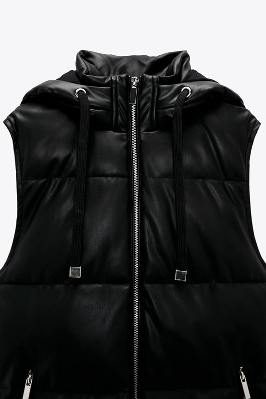 Make a statement in premium women's black leather coat from the collection. Made from classic high-quality faux leather with cotton filling..