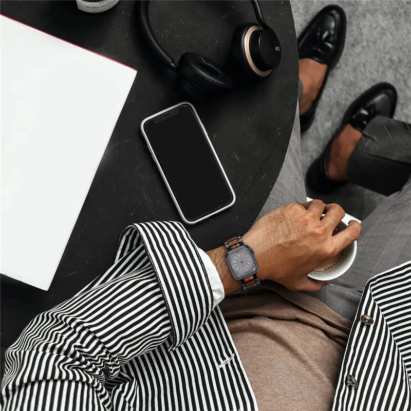 This product features: refine your look with this apple watch band, a one-of-a-kind band that combines stainless steel with genuine sandalwood, finished with a sturdy clasp. once it's on, you'll love it so much that you won't want to take it off.