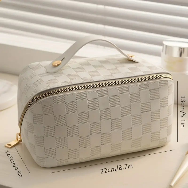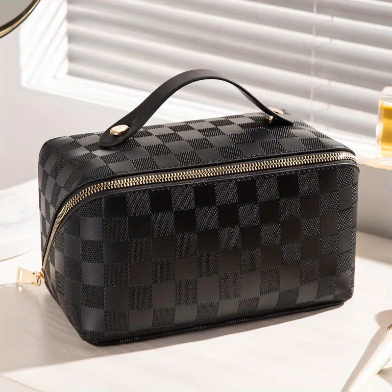 This product features: compact yet spacious, this beautifully crafted bag keeps your cosmetics and toiletries neatly arranged and within easy reach. with attention to detail in every stitch and an elegant checkered pattern, it’s a must-have travel partner.
