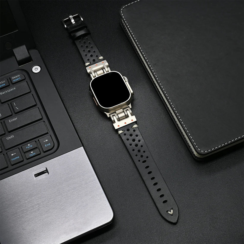 This product features: refine your look with this apple watch band, crafted with reinforced mecha lugs and finished with a genuine leather band for a rugged and robust look. once it's on, you'll love it so much that you won't want to take it off.