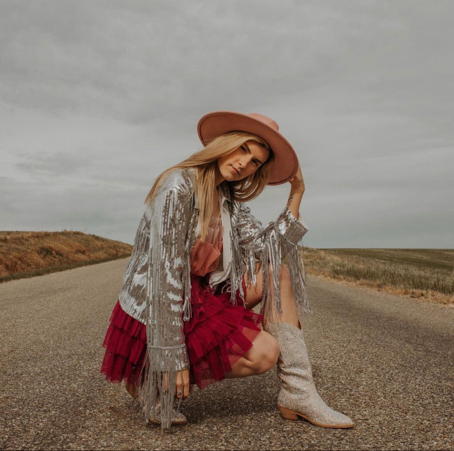 Make a statement in our sequined jacket is a dazzling and eye-catching outerwear piece that is designed to make a bold fashion statement. The jacket is made from a lightweight and flexible polyester material and features sequins that are sewn onto the fabric. One-of-a kind design that gets better with age instead of worse..
